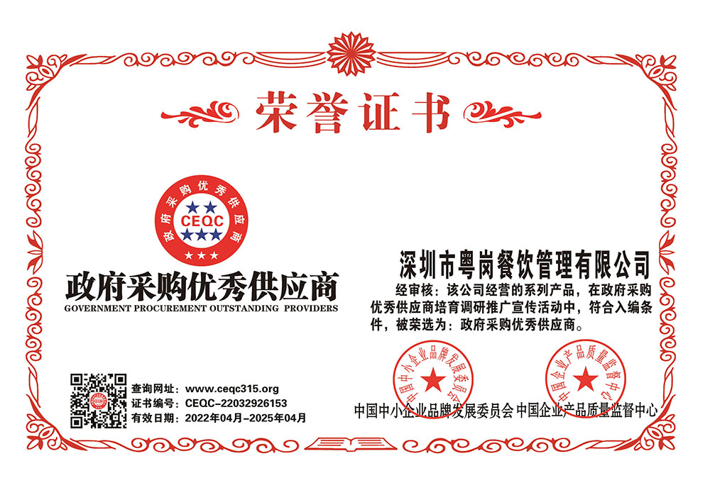 深圳市粵崗餐飲管理有限公司,是一家集蔬菜種植和農(nóng)副產(chǎn)品配送為一體的專業(yè)型餐飲公司,主要為學校、工廠企事業(yè)機關單位提供蔬菜和農(nóng)副產(chǎn)品配送服務。公司自成立以來始終以質(zhì)優(yōu)價廉、服務至上為原則,嚴格按照ISO:9001國際標準體系進行管理。同時建立了行業(yè)領先的配送中心、大型冷庫和保鮮庫、檢測中心以及專業(yè)化的配送團隊,能長期安全、穩(wěn)定、準時的配送貨物。我們所有蔬菜均經(jīng)過初步加工、無黃葉,無泥沙等雜質(zhì),利用率達97%以上...保障向用戶提供的各類食材的衛(wèi)生和質(zhì)量。公司為了適應不同客戶的需求,配有專業(yè)人員和配送車輛,實行“一對一”的服務體制,一心一意的為客戶服務,秉承粵崗誠實守信、服務第一、客戶至上的服務標準,真正讓客戶花最少的錢吃最好的菜。粵崗多年來何以欣欣向榮,因為我們知道只有勇于擔當責任,才能承擔更大的責任,就是因為 粵崗員工貫徹公司態(tài)度決定一切、細節(jié)決定成敗的真理,從質(zhì)量抓起,從服務做起,才創(chuàng)造了如今的規(guī)?;⒔y(tǒng)一性配送、專業(yè)化服務的粵崗。
